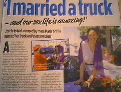 Over time she developed feelings towards vehicles, Ford Trucks in particular. No longer willing to fake affection for men, she purchased a Ford and married him in a wedding ceremony conducted by a friend. After the wedding, the married couple went on a honeymoon to a campsite. According to Maria, their sex life is healthy and active.